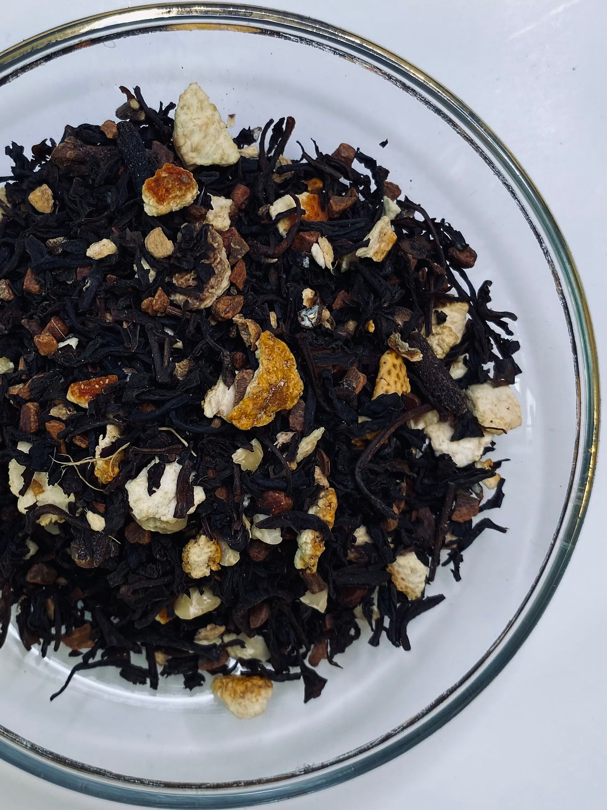 En klassiker! Svart te med klassiska glöggkryddor. Ingredienser: Svart te, kanel, apelsinskal, mandel, ingefära, kryddnejlika, kardemumma, arom.