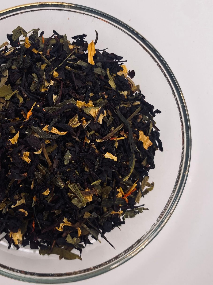 Fira våren med ett smakfullt påskte som kombinerar fylligt svart te och friskt grönt te med solmogna fruktbitar och vackra blomblad. Denna balanserade teblandning ger en rund, fruktig och lätt blommig kopp – perfekt för påskens alla fikastunder.